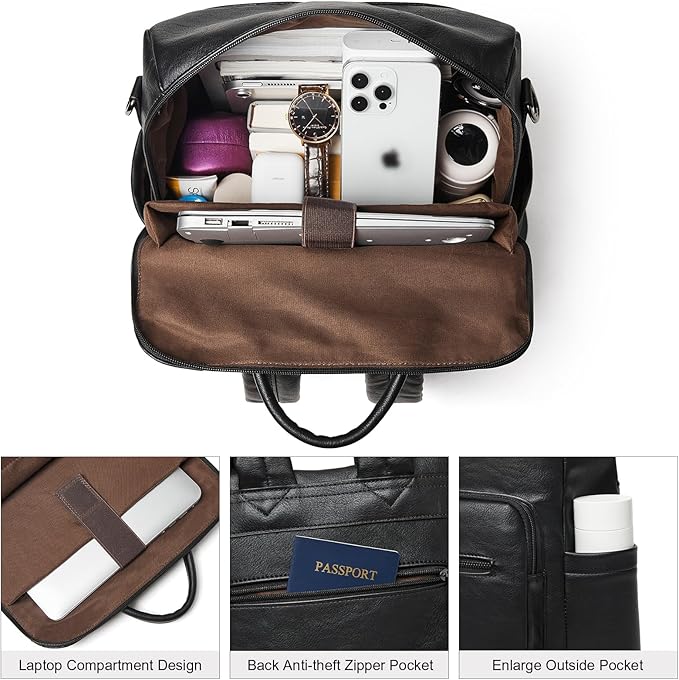 - 【High Quality Material】Backpack purse for women made of soft and durable faux leather and fabric lining,this leather backpack has a smooth and durable zipper closure,and each seam is reinforced for durability.The leather laptop backpacks features excellent water-resistant and moisture-proof properties, ensuring it remains in good condition even in humid environments
