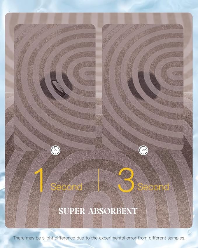 - ABSORBENT :This is a soft version of the diatomaceous earth bath mat. The bathroom rug can suck up dripping water when you come out from bathtub or shower.Faux suede surface dry quickly.Always keep your bathroom clean and tidy