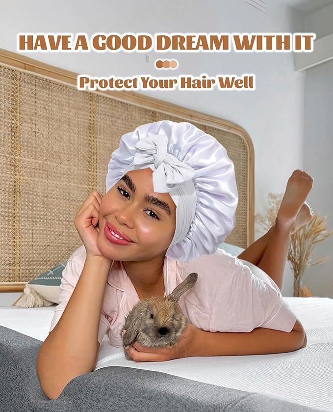 - Satin Bonnet for Sleeping Versatile:Satin hair bonnet is not only suitable for sleeping, you can also use it to wash your face, bathe, cook, do SPA, tie your hair or clean your face while doing makeup, even do housework, do yoga and so on