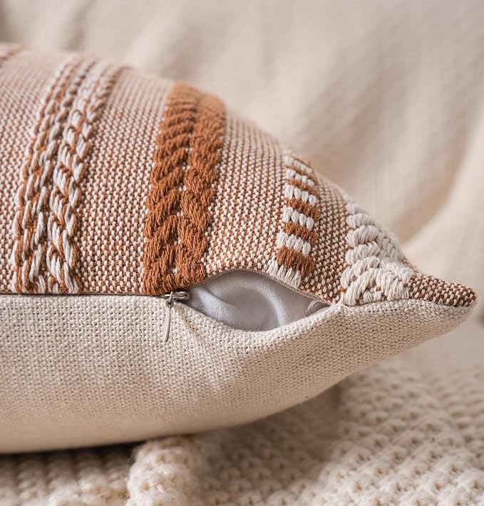 - DESIGN DETAILS: The edges of our pillow covers are all precision stitched to ensure that they will not be damaged and frayed during your daily use, the zipper is designed to be invisible, making it look good while being easy to use; Each striped pillowcase highlights two woven stripes that will match perfectly when used in any sofa decor