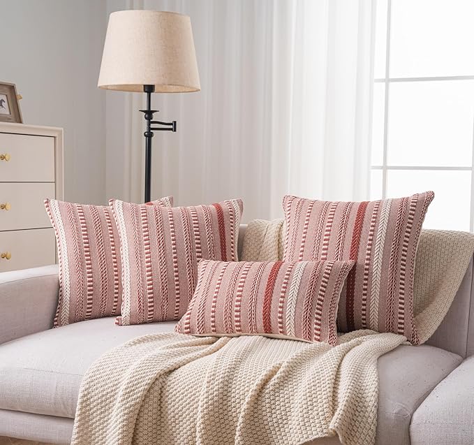 - DESIGN DETAILS: The edges of our pillow covers are all precision stitched to ensure that they will not be damaged and frayed during your daily use, the zipper is designed to be invisible, making it look good while being easy to use; Each striped pillowcase highlights two woven stripes that will match perfectly when used in any sofa decor