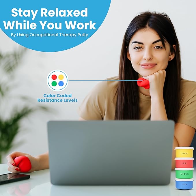 - Tailored for Stress Relief - The therapy putty for kids can be used for exercise and stress relief during work, travel, or leisure. The tactile sensory stimulation of hand therapy putty helps calm nerves, improve focus, and promote relaxation, making it a multipurpose therapy product.