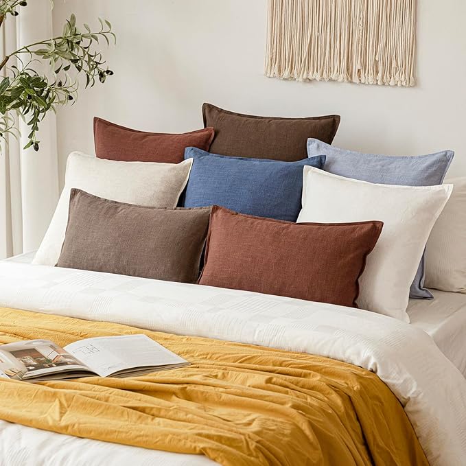- 【Natural Fabric】Our pillow covers are made of 70% natural ramie and 30% cotton. Natural ramie fabric makes it soft, comfortable and breathable.