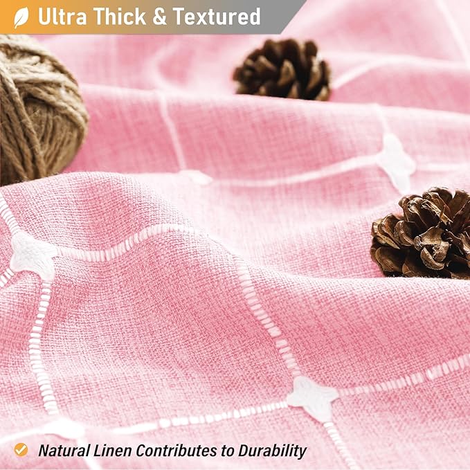 BTTN Extra Long Shower Curtain - 72x84 Inch Long Boho Chic Tassel Linen Fabric Shower Curtain Set with Hooks, Tall Modern Farmhouse Elegant Heavy Duty Thick Cloth Shower Curtains for Bathroom - Pink