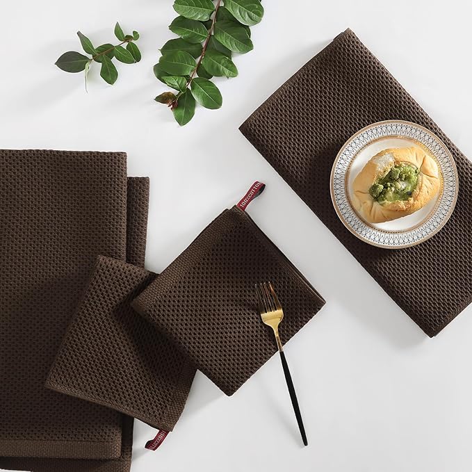 Homaxy 100% Cotton Kitchen Towels and Dishcloths Set, 12 x 12 Inches and 13 x 28 Inches, Set of 10 Bulk Kitchen Towels Set, Ultra Soft Absorbent Dish Cloths for Washing Dishes, Dark Brown