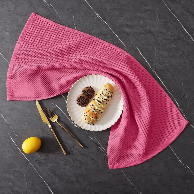 Homaxy 100% Cotton Kitchen Towels and Dishcloths Set, 12 x 12 Inches and 13 x 28 Inches, Set of 8 Bulk Kitchen Towels Set, Ultra Soft Absorbent Dish Cloths for Washing Dishes, Hot Pink