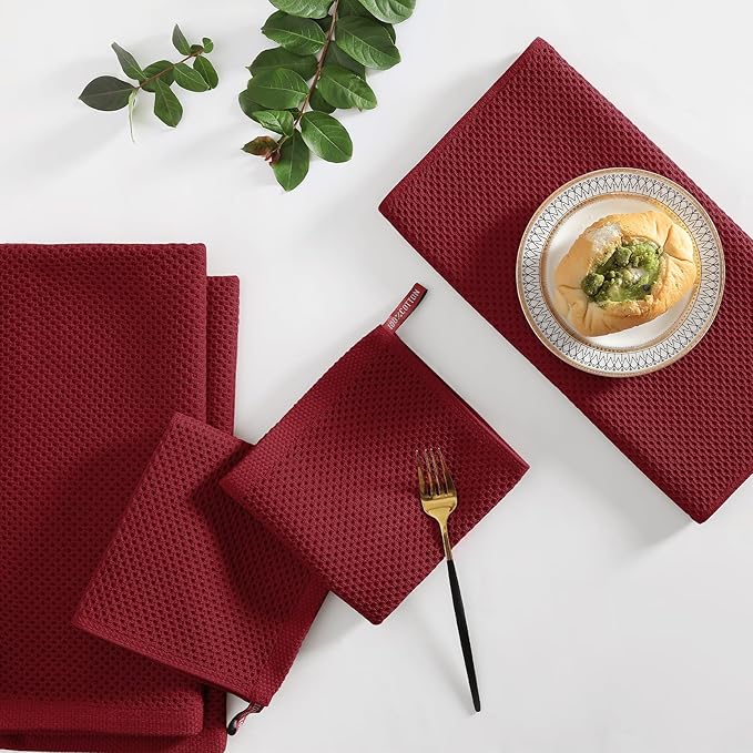 Homaxy 100% Cotton Kitchen Towels and Dishcloths Set, 12 x 12 Inches and 13 x 28 Inches, Set of 8 Bulk Kitchen Towels Set, Ultra Soft Absorbent Dish Cloths for Washing Dishes, Burgundy