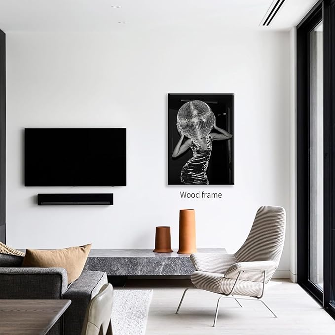 - Retro Wall Art:Black and white poster size are 08x10 inch,this disco ball wall art are wrapped and stretched over wood frame.Ready to be hung directly,you can create a fashion and vibrant atmosphere