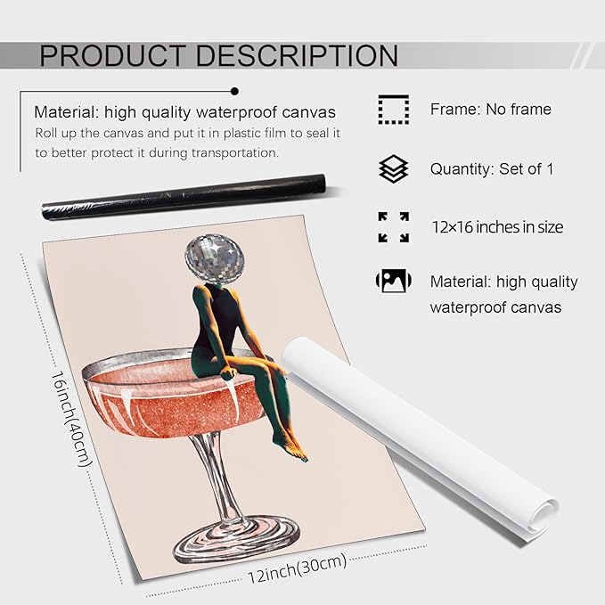 - Bar Cart Decor:Fashionable disco ball posters create a modern and personalized space atmosphere.Bar wall art which can provide decoration for kitchen,dining room,bar, dorm ,living room,bedroom,apartment, hotel, office