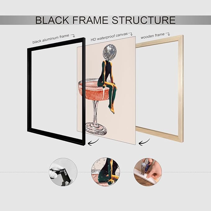 - Disco Ball Wall Decor: Retro posters size is 08x10 inch. Trendy wall art art is wrapped and stretched in a wood frame and set in a black aluminum frame.The black frame also adds some modernity and style to the poster