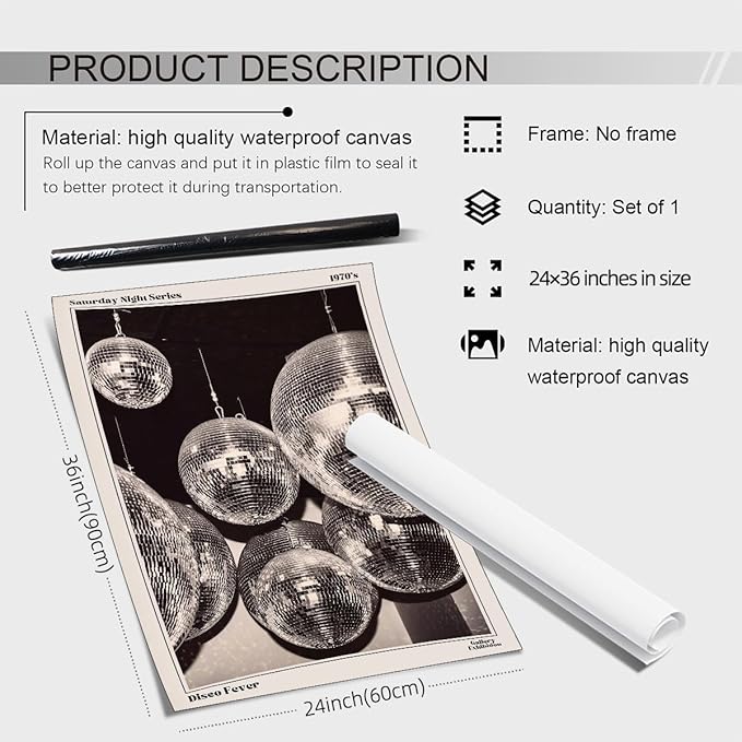 - Disco Ball Poster:The aesthetic posters size is 24x36 inch ,not include frames. You to choose your preferred frames to showcase them.Assemble and install by yourself, fully enjoy the fun of DIY