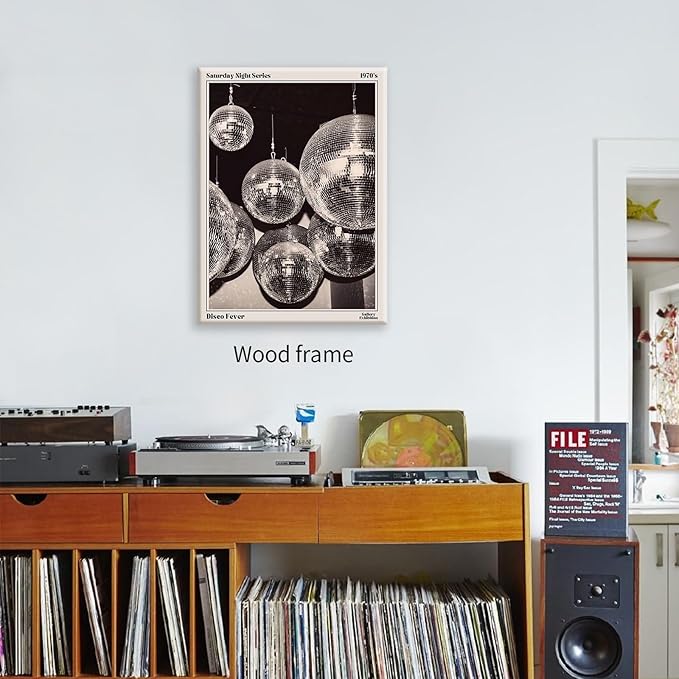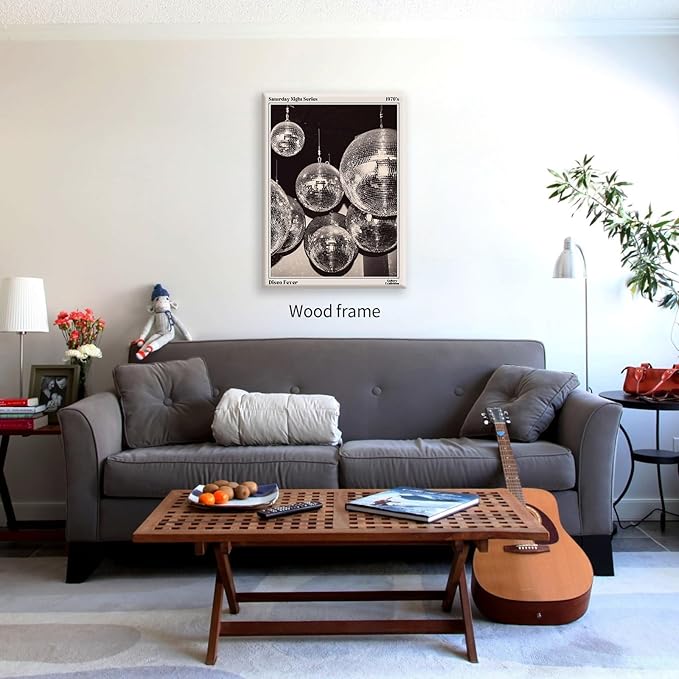- Retro Wall Art:Black and white poster size are 24x36 inch,this disco ball wall art are wrapped and stretched over wood frame.Ready to be hung directly,you can create a fashion and vibrant atmosphere