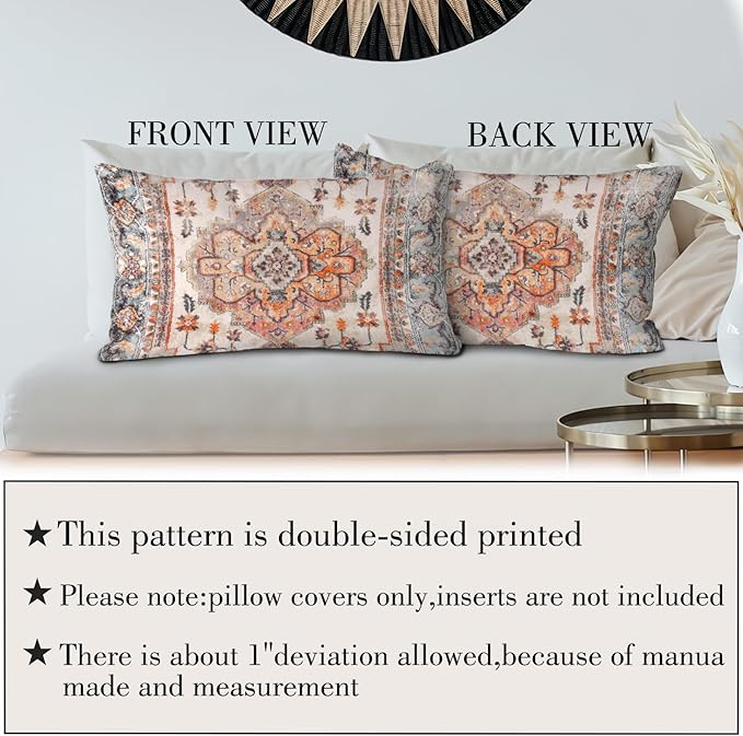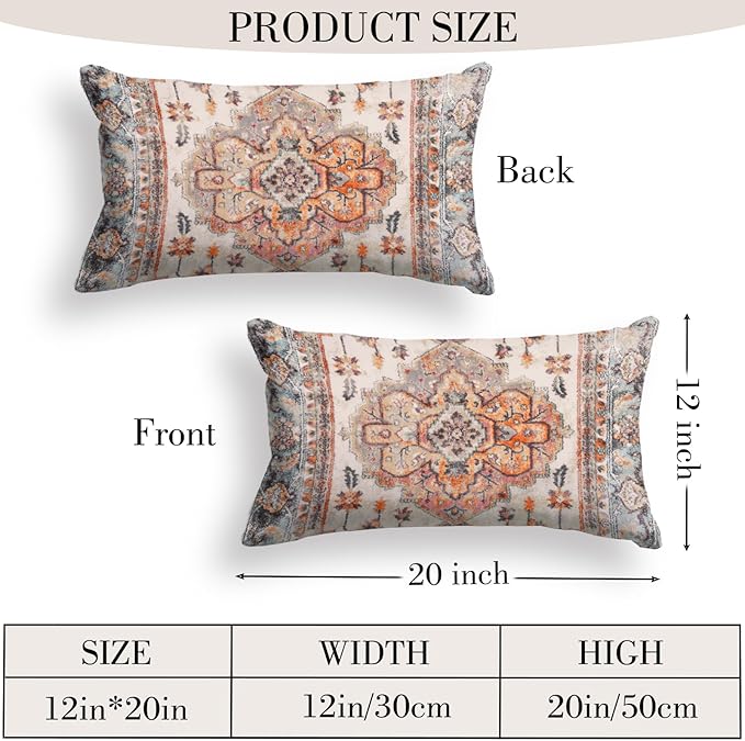 - Boho Decor Aesthetic Design: The throw pillow covers has a Bohemian Carpet Pattern Design Pattern;The reversible pattern pillow covers 12 x 20 inch can match almost any other bohemian or house decor in your home, like that beautiful boho rug in your living room, you need these throw pillow covers to decorate your home and make it look more integrated and beautiful