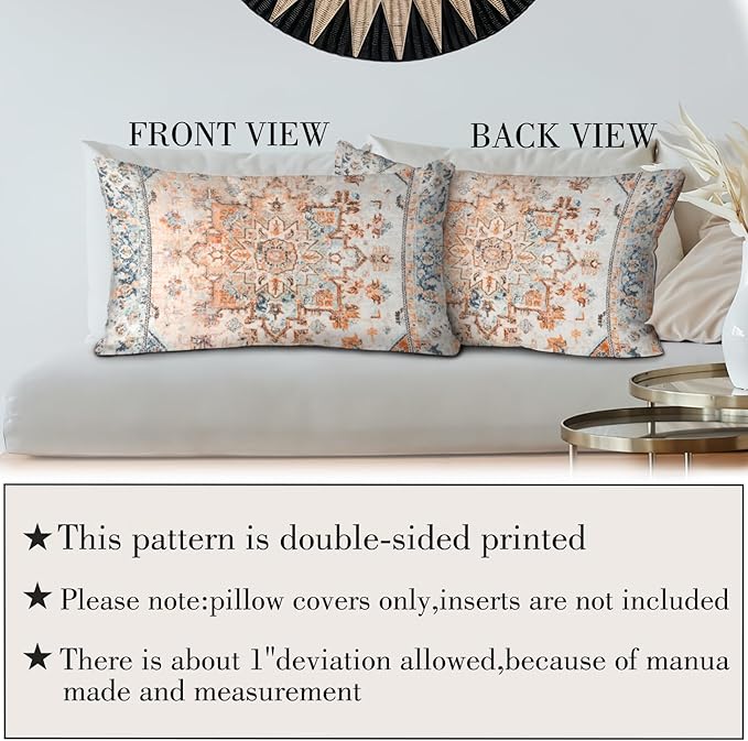 - Boho Decor Aesthetic Design: The throw pillow covers has a Bohemian Carpet Pattern Design Pattern;The reversible pattern pillow covers 12 x 20 inch can match almost any other bohemian or house decor in your home, like that beautiful boho rug in your living room, you need these throw pillow covers to decorate your home and make it look more integrated and beautiful