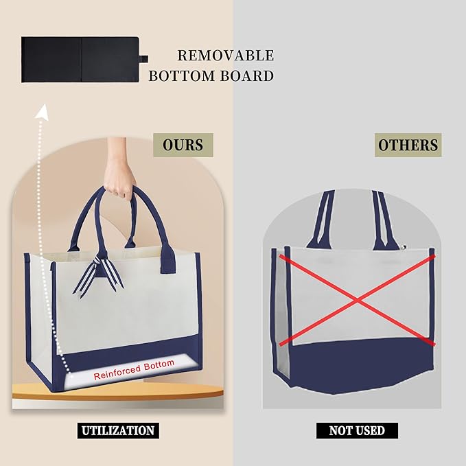 - Wash Tips & Reusable:These beach bag feature a thick canvas exterior and a lining that stays dry inside. To preserve the lining, hand wash only—machine washing may cause damage. Avoid tumble drying or ironing. For stains, spot cleaning is recommended to maintain the bag's shape. This reusable tote is designed for long-term use, remaining studry and functional for years without breaking.