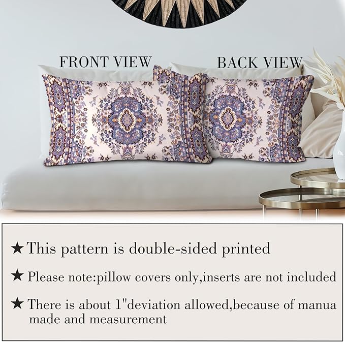 - Boho Decor Aesthetic Design: The throw pillow covers has a Bohemian Carpet Pattern Design Pattern;The reversible pattern pillow covers 12 x 20 inch can match almost any other bohemian or house decor in your home, like that beautiful boho rug in your living room, you need these throw pillow covers to decorate your home and make it look more integrated and beautiful