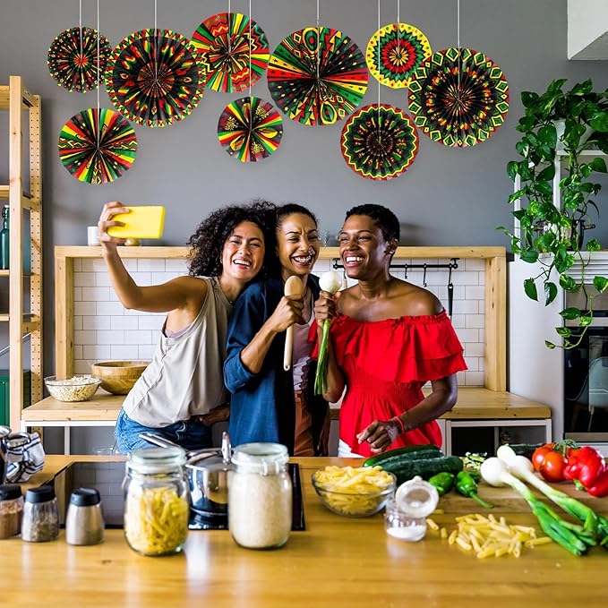 - Quality Material: our kente flag hanging paper fans are made of thickened paper, not easy to tear and fade, showing a three dimensional shape to create a sense of space for your Happy Kwanzaa decorations, African American Festival decorations, black history month decorations, Juneteenth decorations for indoor and outdoor