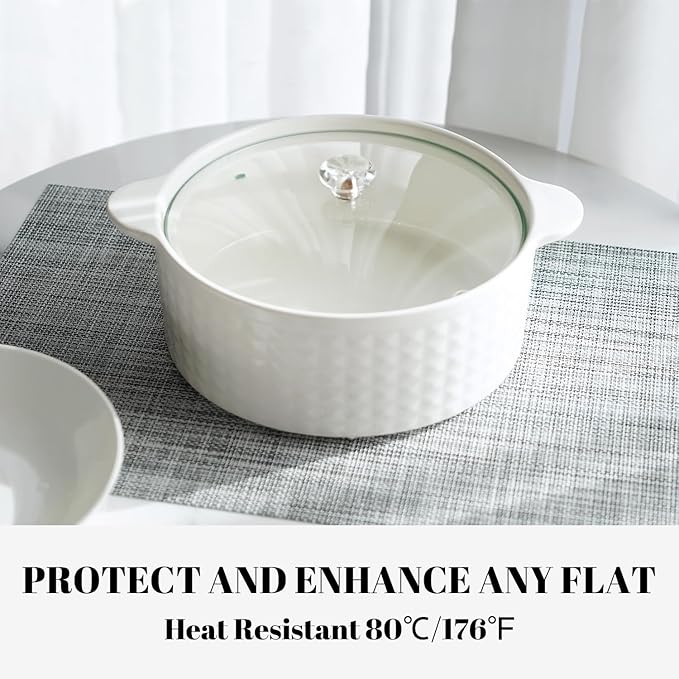 - Protect Your Table: These heat-resistant placemats can withstand temperatures up to 176°F (80°C), providing reliable protection against hot dishes, spills, stains, and scratches. Keep your table and furniture looking pristine while enjoying worry-free meals.