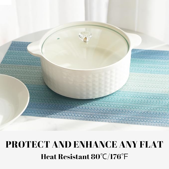 - Durable & High-Quality Placemats: Crafted from premium 70% PVC and 30% Polyester, these placemats for dining table are precision-woven for exceptional durability. Designed to withstand daily use, they are heat-resistant, water and oil proof, long-lasting, non-slip, and easy to clean, making them a practical and stylish addition to any dining setup.
