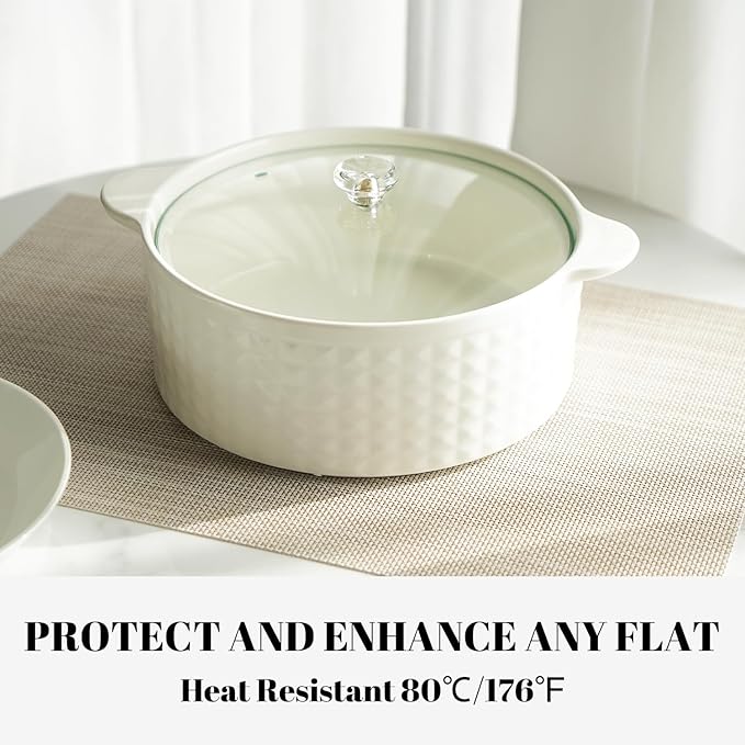 - Protect Your Table: These heat-resistant placemats can withstand temperatures up to 176°F (80°C), providing reliable protection against hot dishes, spills, stains, and scratches. Keep your table and furniture looking pristine while enjoying worry-free meals.