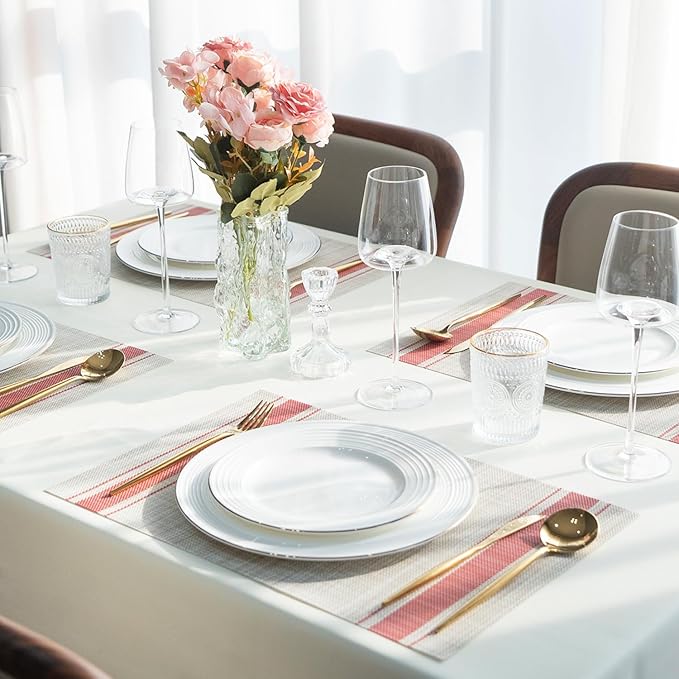- Durable & High-Quality Placemats: Crafted from premium 70% PVC and 30% Polyester, these placemats for dining table are precision-woven for exceptional durability. Designed to withstand daily use, they are heat-resistant, water and oil proof, long-lasting, non-slip, and easy to clean, making them a practical and stylish addition to any dining setup.