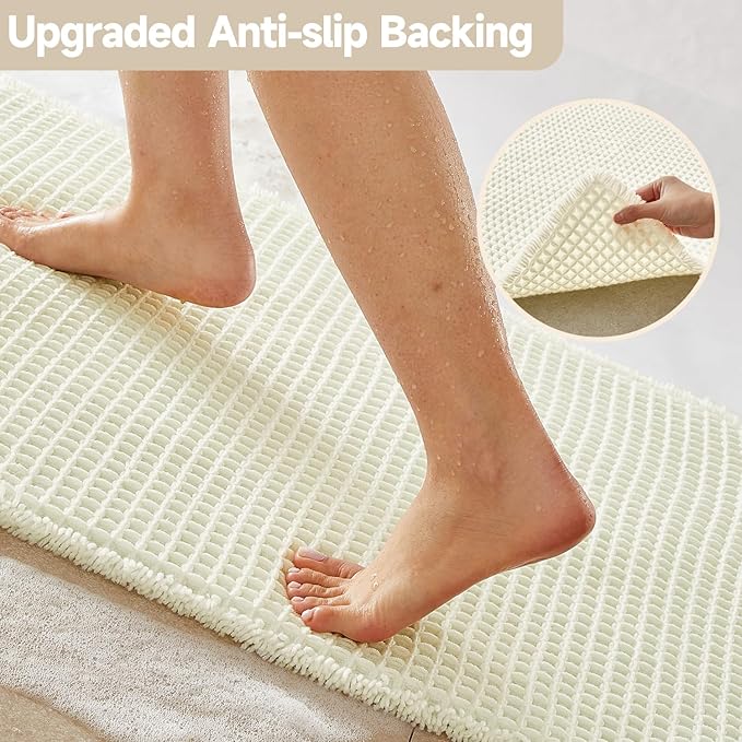 Cream White Long Bathroom Rugs, Waffle Runner Rug Bathroom Non Slip Washable Super Absorbent Quick Dry Boho Farmhouse Bath Mat, 60"x24" Cream White