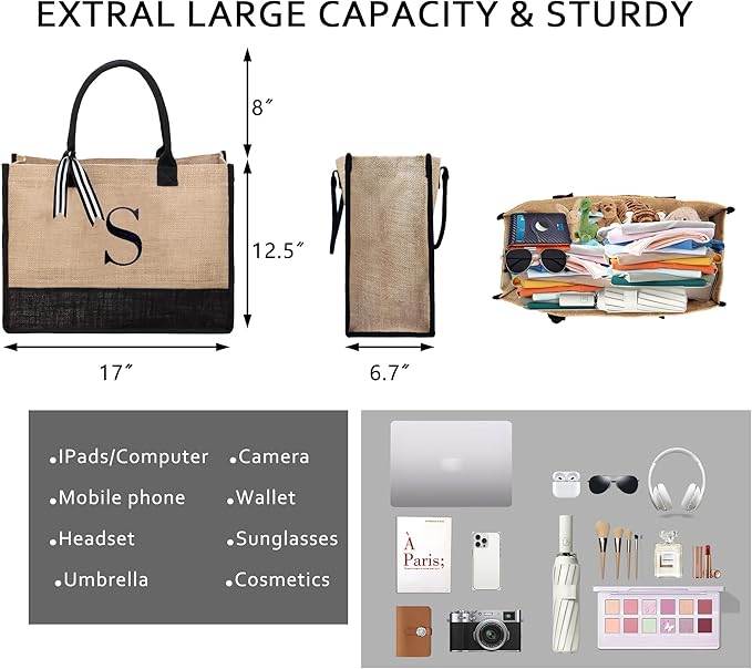 • Premium Burlap & Durability: Crafted from natural burlap with a laminated interior coating, this tote bag preserve your belongings from water, whether at the beach or during outdoor adventures. The removable bottom insert ensures the bag stands upright, while reinforced seams and soft canvas handles provide comfort and durability.
