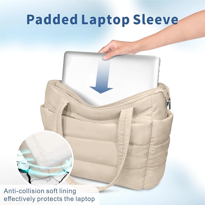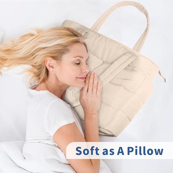 TOPDesign Puffer Tote Bag for Women, Lightweight Puffy Handbag with Compartments, Quilted Shoulder Bag for Work, Travel, Gym