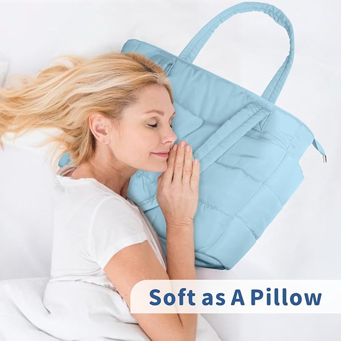 TOPDesign Puffer Tote Bag for Women, Lightweight Puffy Handbag with Compartments, Quilted Shoulder Bag for Work, Travel, Gym