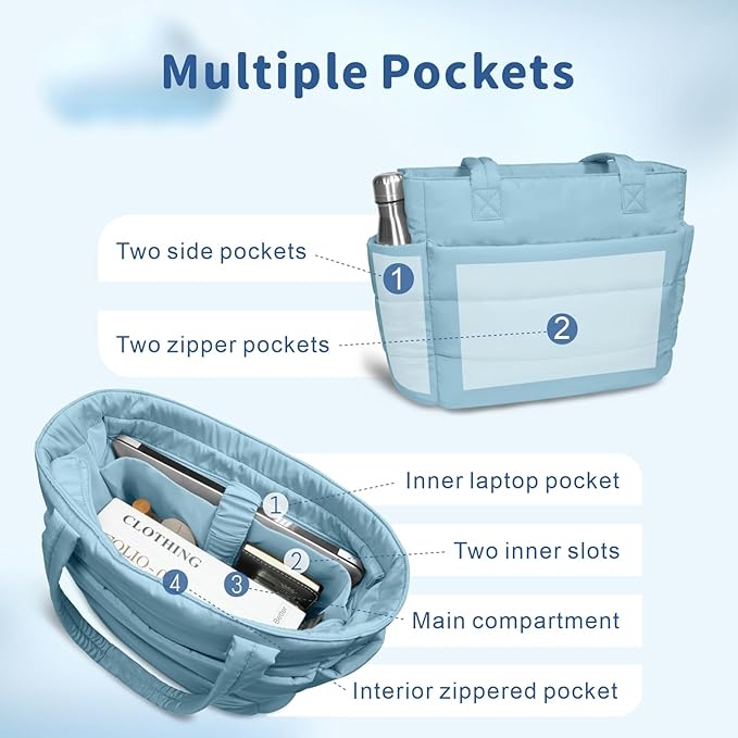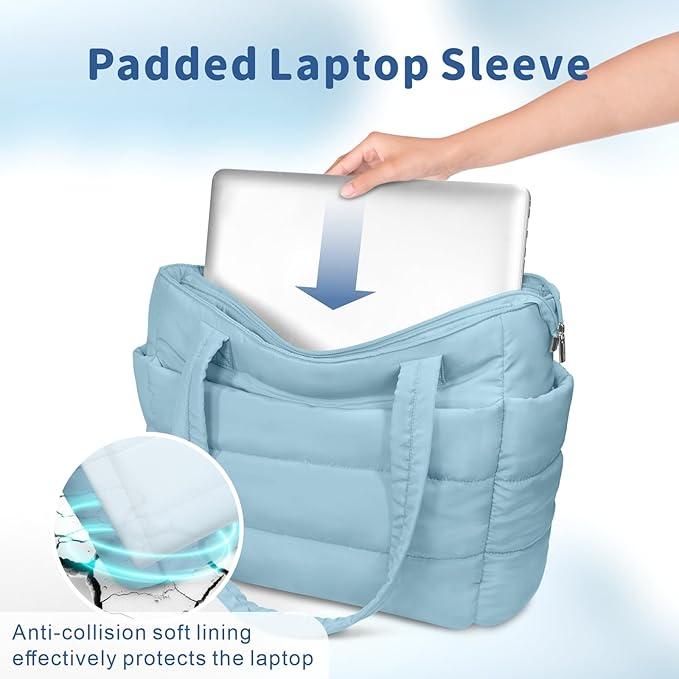 TOPDesign Puffer Tote Bag for Women, Lightweight Puffy Handbag with Compartments, Quilted Shoulder Bag for Work, Travel, Gym