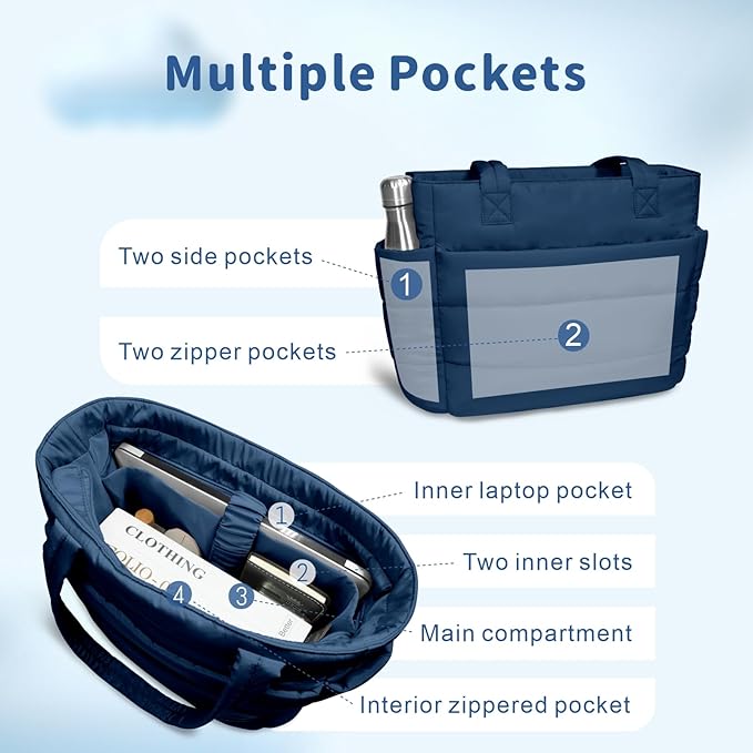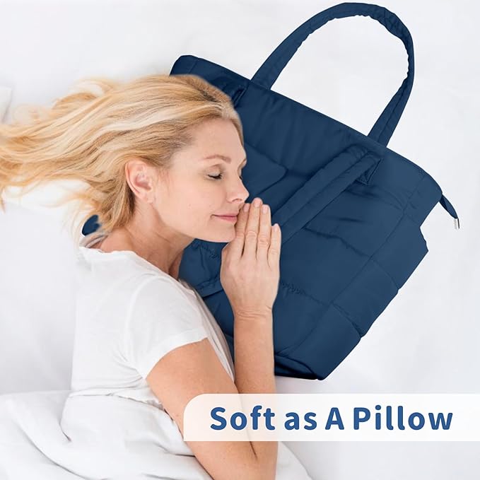 TOPDesign Puffer Tote Bag for Women, Lightweight Puffy Handbag with Compartments, Quilted Shoulder Bag for Work, Travel, Gym