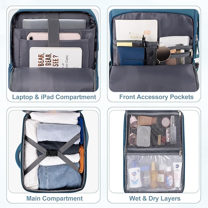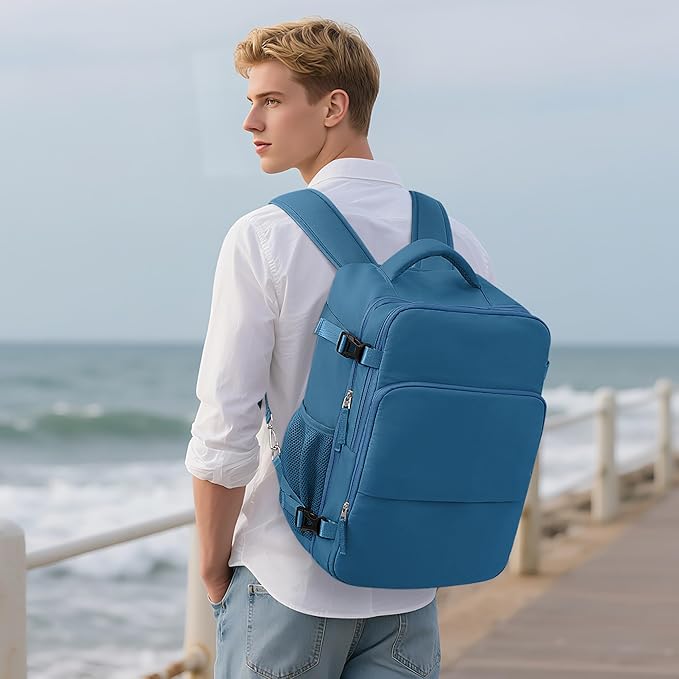 Travel Backpack, Carry on Flight Approved Backpack with Multi-Pockets, TSA Waterproof 17.3inch Laptop Backpack, Personal Item Travel Bag for Men Women, Deep Blue