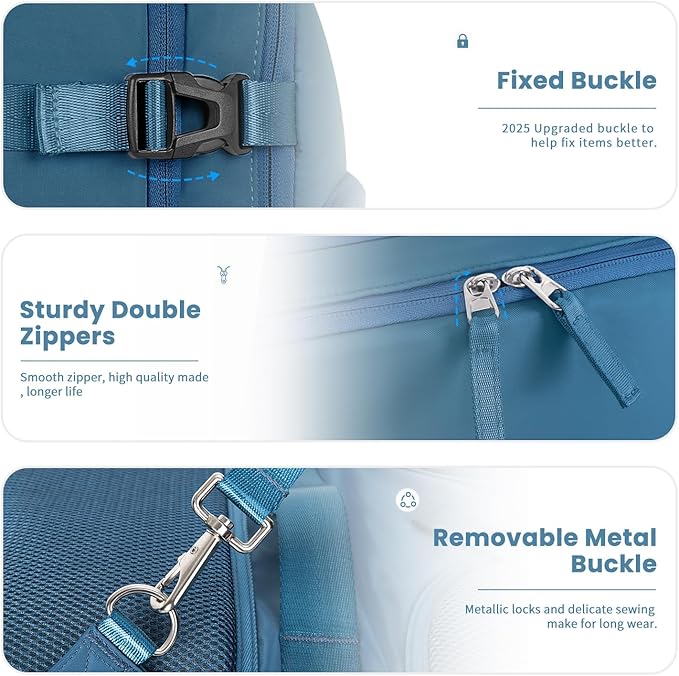 - Easier Packing: Features with 180 degree opening and enough depth of the interior space, this traveling backpack enables you to pack it almost like a suitcase. And the side buckles will be helpful to compress the backpack when you overpack it