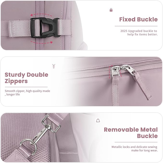 - Easier Packing: Features with 180 degree opening and enough depth of the interior space, this traveling backpack enables you to pack it almost like a suitcase. And the side buckles will be helpful to compress the backpack when you overpack it