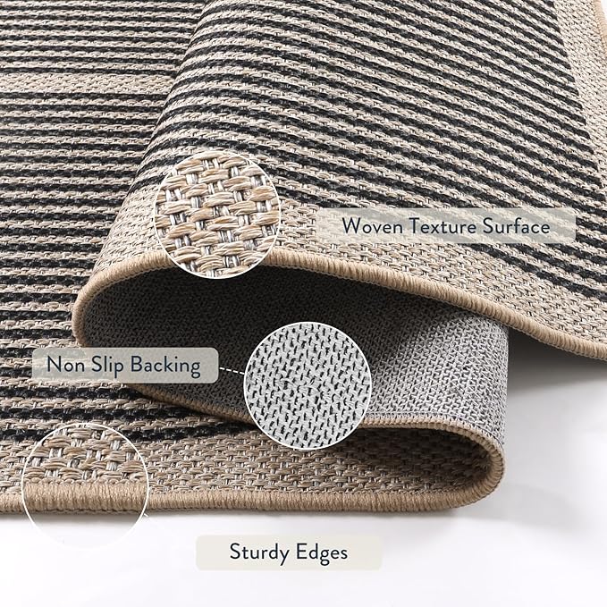 Lahome Rainbow Easy Jute Rug, 2x3 Farmhouse Kitchen Rugs Non Slip Washable Entryway Rug, Neutral Non Slip Non Shedding Low Pile Indoor Outdoor Door Mats for Porch Foyer