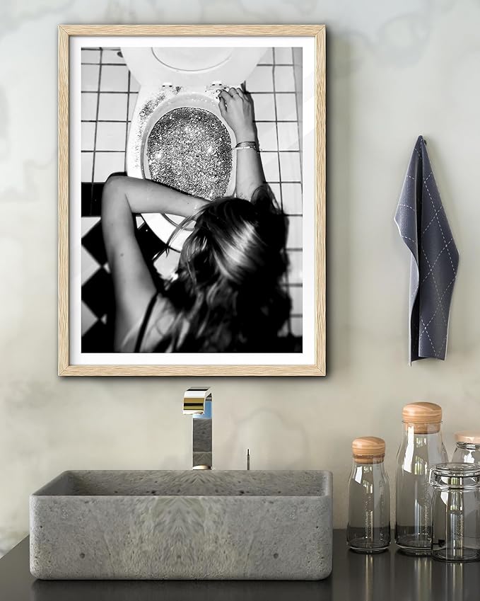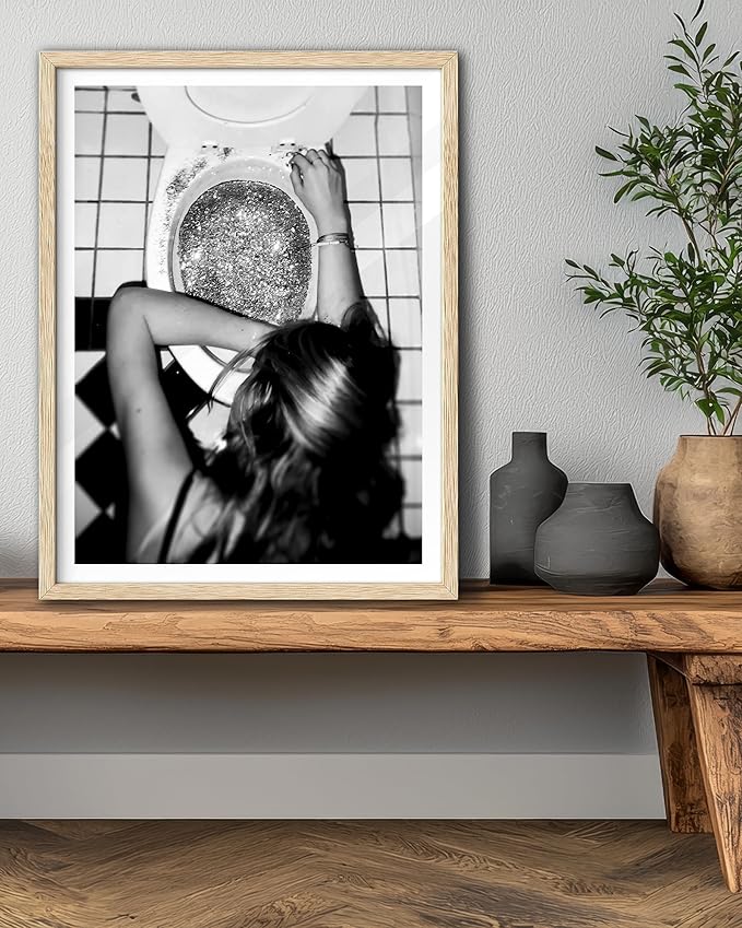 EcoHest Trendy After the Disco Party Framed Wall Art, Large 16x20 in OAK Wood Black and White Funny Bathroom Canvas Art, Teen Girl Poster College Dorm Decor, Set of 1 for Bedroom Living Room