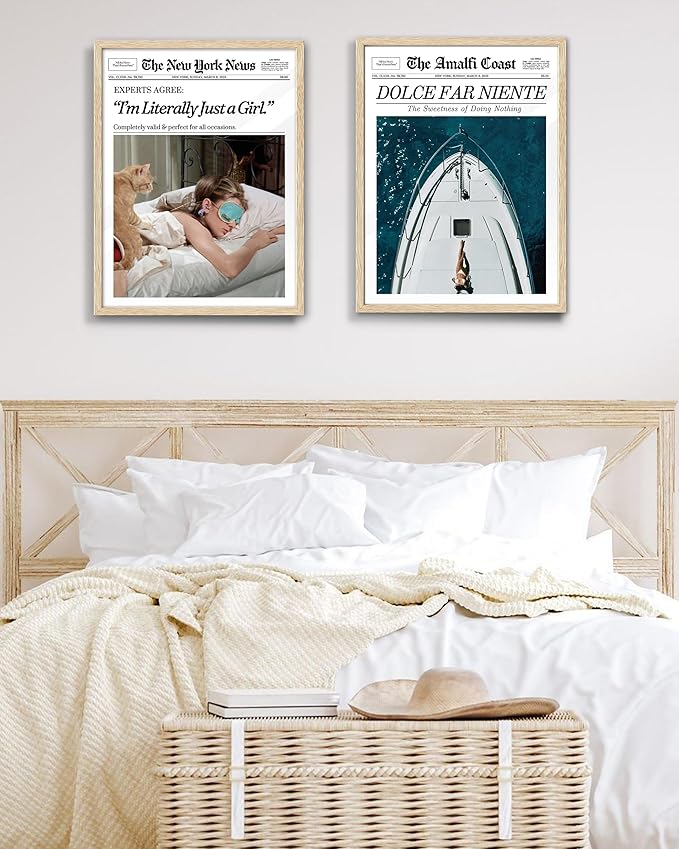 - Retro Magazine-Inspired Decor: The beige tones and magazine layout evoke a nostalgic, preppy vibe that complements a variety of modern and retro interiors, perfect for creating a fashionable atmosphere in any room.
