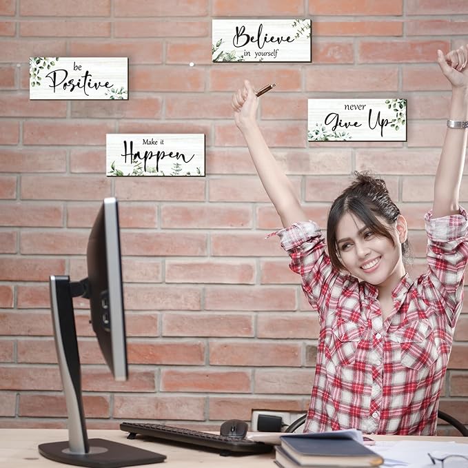 - Reliable and Sturdy: the green motivational wall decor are made of wood material, safe and odorless, sturdy and not easy to break, these wooden inspirational plaques for you to use safely, There are 2 hooks installed behind every wooden office sign for you to hang directly