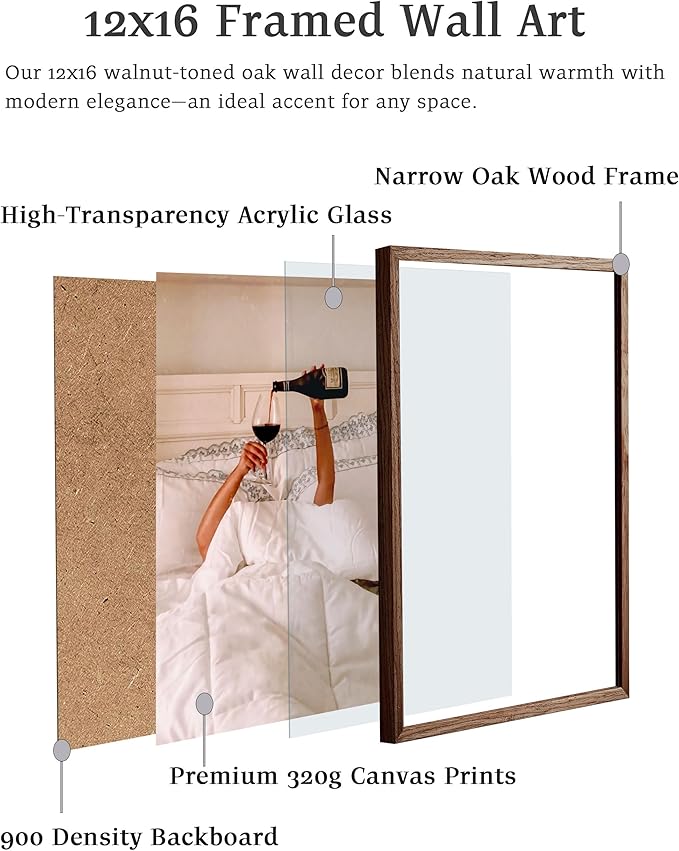 - Premium Walnut-Colored OAK Wood Frame: The natural OAK wood frame in a warm walnut finish adds a sophisticated touch to the artwork while ensuring durability and style.