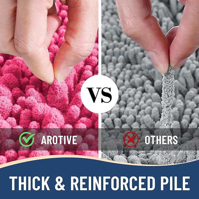 Arotive Luxury Chenille Bathroom Rug Mat, Extra Soft Thick Absorbent Shaggy Bath Rugs, Non-Slip Machine Wash Dry, Plush Bath Mats for Bathroom, Shower and Tub, 36x24, Deep Pink