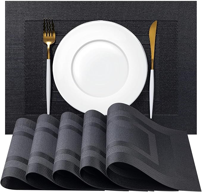 Placemat Set of 4 - Easy Clean Woven Vinyl Placemats for Dining Table, Indoor/Outdoor Place Mats, Washable PVC Table Mats(Black Cube)