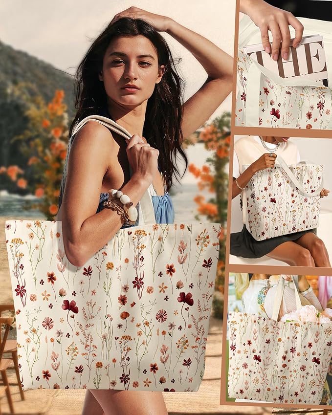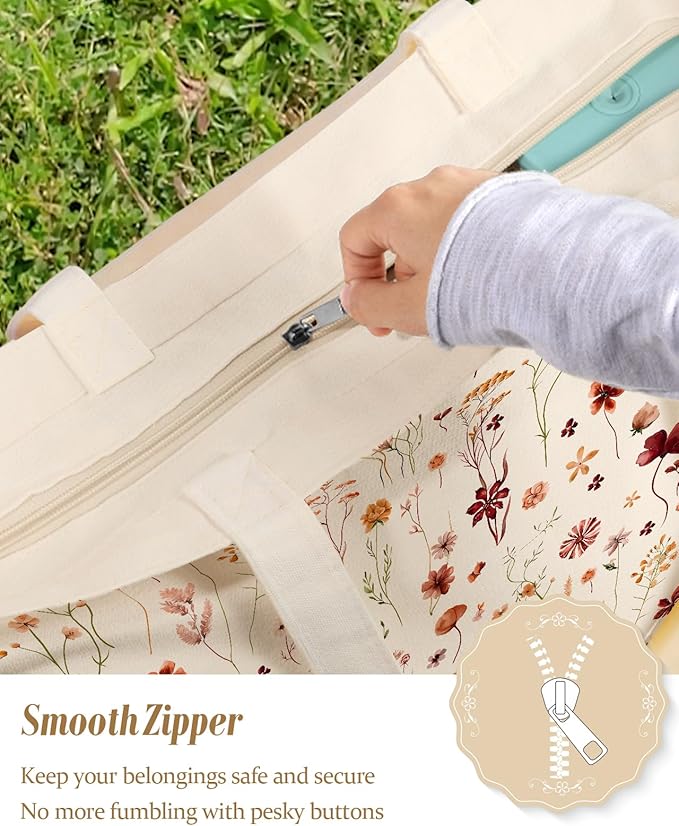 Large Tote Bag for Women - Canvas Tote Bag with Zipper Aesthetic Reusable Shoulder Bag for Gym, Travel, Work