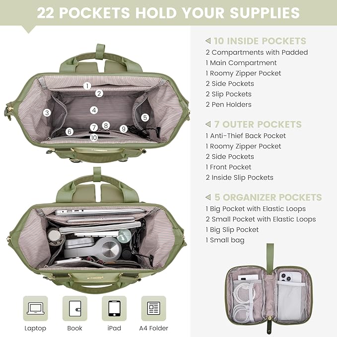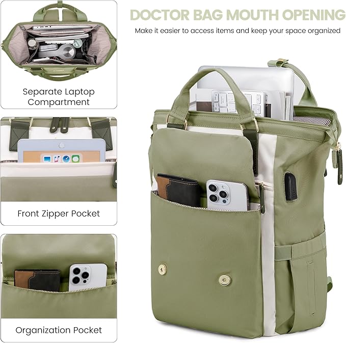 - Stylish & Functional Design : This laptop backpack for women combines elegance with practicality. Featuring padded compartments for laptops and tablets, it keeps devices safe while maintaining a sleek design. Adjustable straps ensure comfort, and the wide opening with smooth-gliding zippers offers easy access to items. Perfect as a teacher bag or nurse bag.