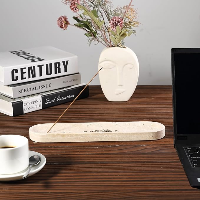 Koville Travertine Incense Holder, Incense Holder for Sticks, Long Incense Sticks Holder Ash Catcher for Meditation Yoga SPA, Natural Stone Incense Burner, Home Table Decor(Beige)