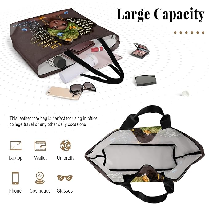 African American Black Women Tote Bag Black Girl Magic Shoulder Handbag For Work Travel Beach Shopping