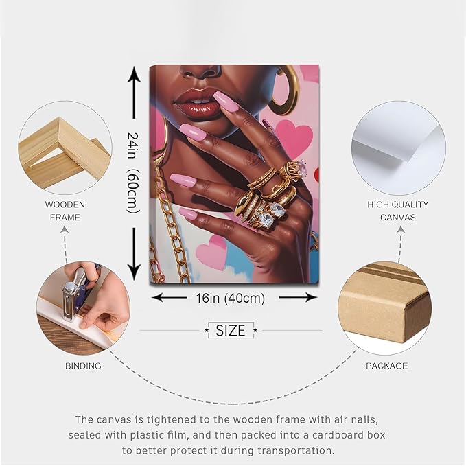 - 【 Black Girl Wall Art】Elevate your space with this Set of 3 Framed Canvas Prints, celebrating African American beauty, confidence, and fashion. Featuring vibrant pink hues, chic styling, and empowering imagery, this artwork adds a trendy, Afrocentric touch to any room—perfect for lovers of feminine, modern, and glamorous decor.