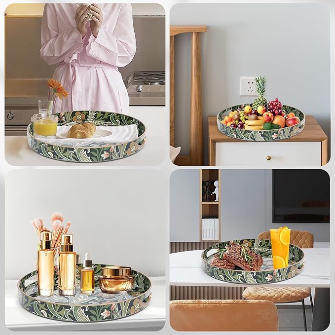 Round Coffee Table Trays, Serving Tray with Handles for Ottoman Coffee Table, Large Tray for Living Room Modern