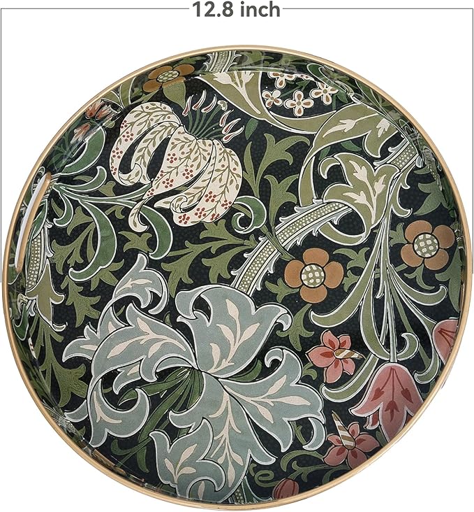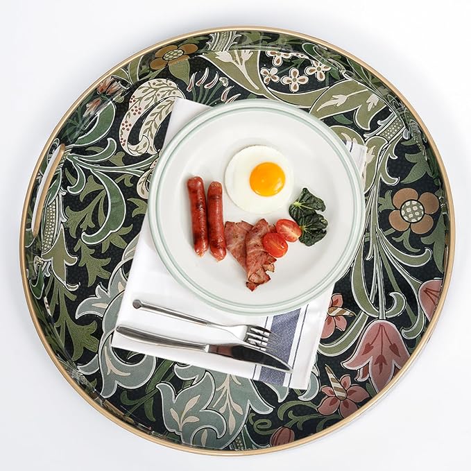 - πΌγ Preferred material γ This tea trays for serving made of thickened material, it is plastic, with smooth surface and convenient cleaning, round tray with vintage printing design