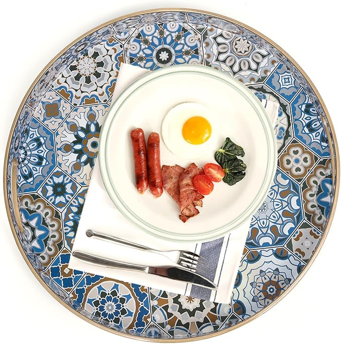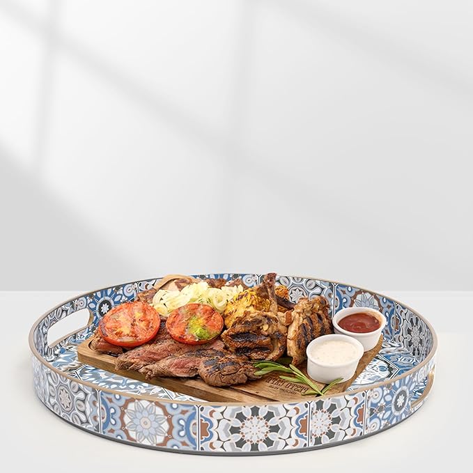 Round Coffee Table Trays, Serving Tray with Handles for Ottoman Coffee Table, Large Tray for Living Room Modern