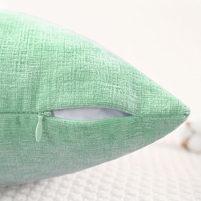 CaliTime Throw Pillow Covers Decorative 16 X 16 Inches Pack of 2 Cozy Chenille Cushion Cases for Couch Sofa Bed Living Room Home Grey Green